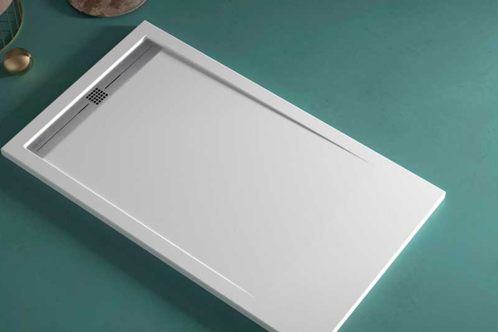 Innovative shower base concept, made of resin materials, mineral fillers and Gel Coat, a highly resistant antibacterial material, and designer bathroom furniture.